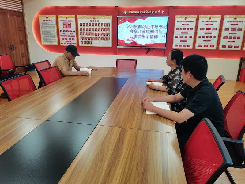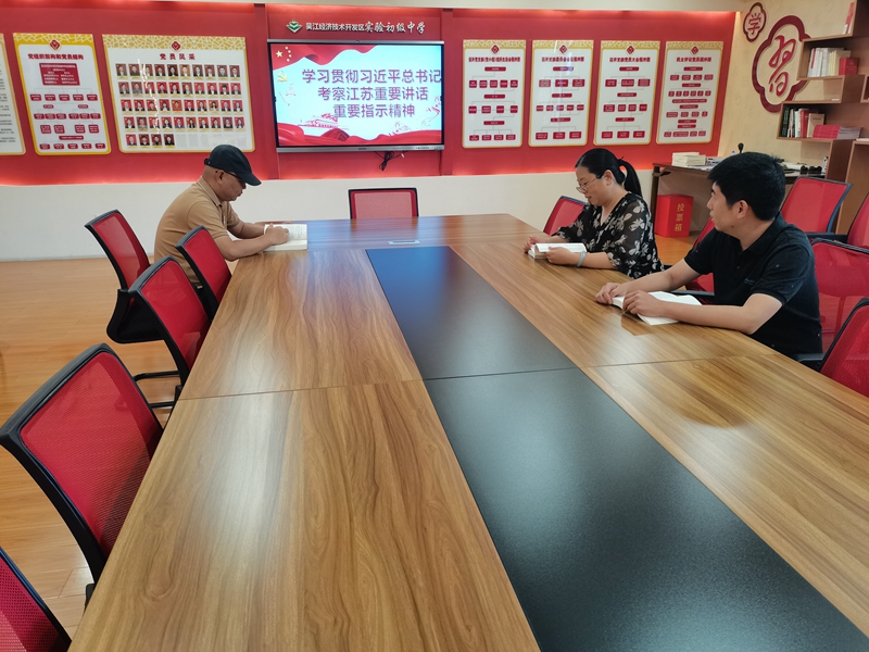 7月14日,吴江经济技术开发区实验初级中学党总支召开主题党日活动,学习贯彻习近平总书记考察江苏重要讲话重要指示精神。