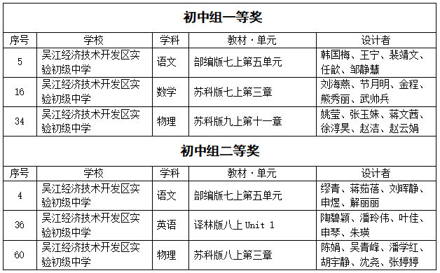 为了深化课程实施改革,落实“双减”精神,强化课程育人导向,引导广大教师深度研读新课程标准,深入钻研教材,聚焦作业设计与研究为突破点,改善教学全过程,实现“教-学-评”一体化,提高教学效益,促进教师专业发展,吴江区教育局教研室组织了全区第二届中小学单元整体作业设计作品评选活动。本次活动,我校组织积极,教师参加踊跃。教研室组织学科专家对参赛作品认真评选,以下组别获奖。