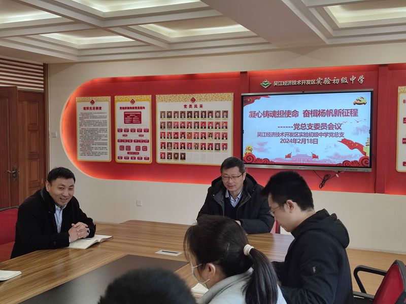 凝心铸魂担使命,奋楫扬帆新征程。新学期开学在即,为及时谋划学校发展思路,促进学校工作高质量发展,全方位筹备开学工作,2月18日,吴江经济技术开发区实验初级中学党总支召开支委会,启航新征程,共谱新篇章。