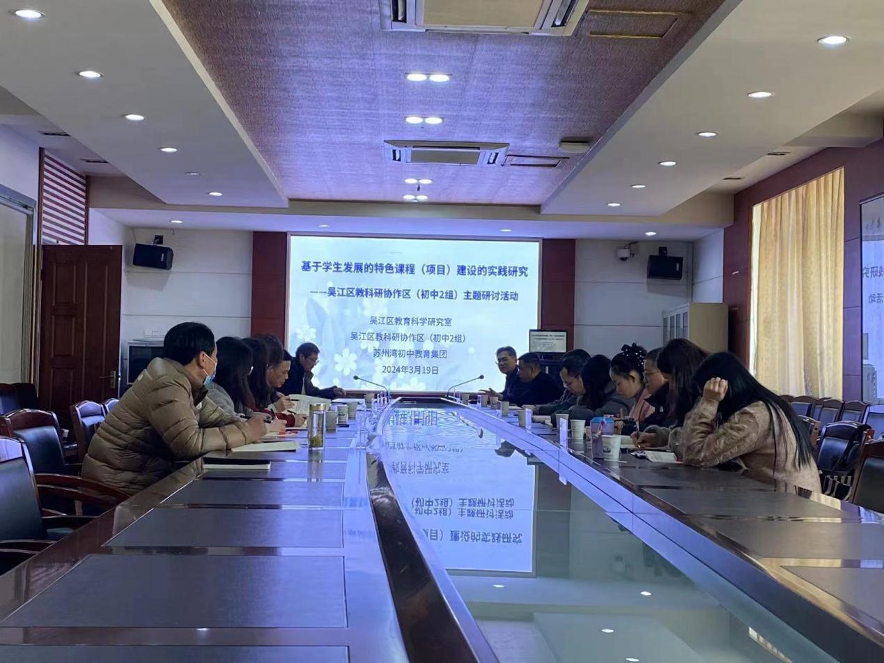 为深化课程教学改革,更新教育理念,转变育人方式,切实提高育人水平,2024年3月19日,吴江区教科研协作区(初中2组)主题研讨活动在吴江经济技术开发区实验初级中学举行。本次研讨的主题为“基于学生发展的特色课程(项目)建设的实践研究”。参与本次活动的有教科协作区(初中2组)9所学校的教科负责人及骨干教师,区教科室陆正荣老师、兼职教科员方芳老师。开发区实验初中吴青峰书记、汪雪斌副校长、教科室成员全程参与研讨活动。