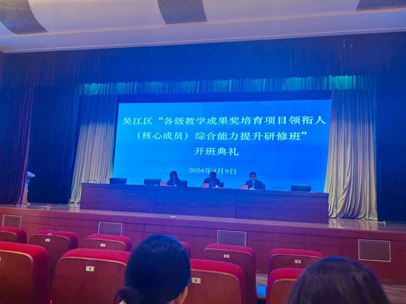 为推进国家课程的高质量实施,推动吴江区中小学学校和教师在教育教学改革实践中培育、提升、凝炼教学成果与推广应用, 4月9日,吴江区教师发展中心举办吴江区“各级教学成果奖培育项目领衔人(核心成员)综合能力提升研修班”开班仪式及第一次研修,我校教科室朱吉、方芳老师参加研修。