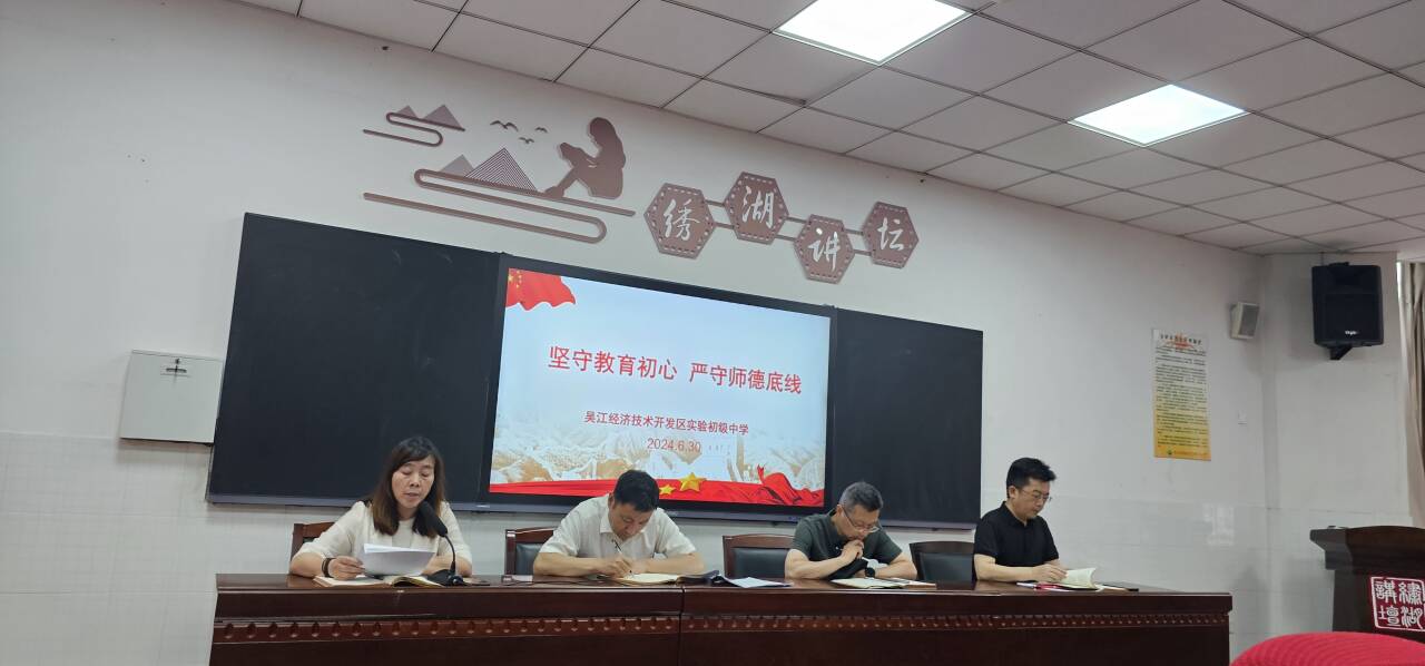 为抓实师德师风建设,临近期末,我校举行“坚守教育初心 严守师德底线”落实师德师风建设培训会,吴书记强调:作为教师要坚守教育初心,严守师德底线,这是教育工作者的神圣使命与庄严承诺,我们要以高尚的师德影响学生,成为他们人生道路上的楷模。师德师风建设是一项长期而艰巨的任务。吴书记要求全体教师,不断提高自己的师德修养和教育教学水平,为培养德智体美劳全面发展的社会主义建设者和接班人贡献自己的力量。